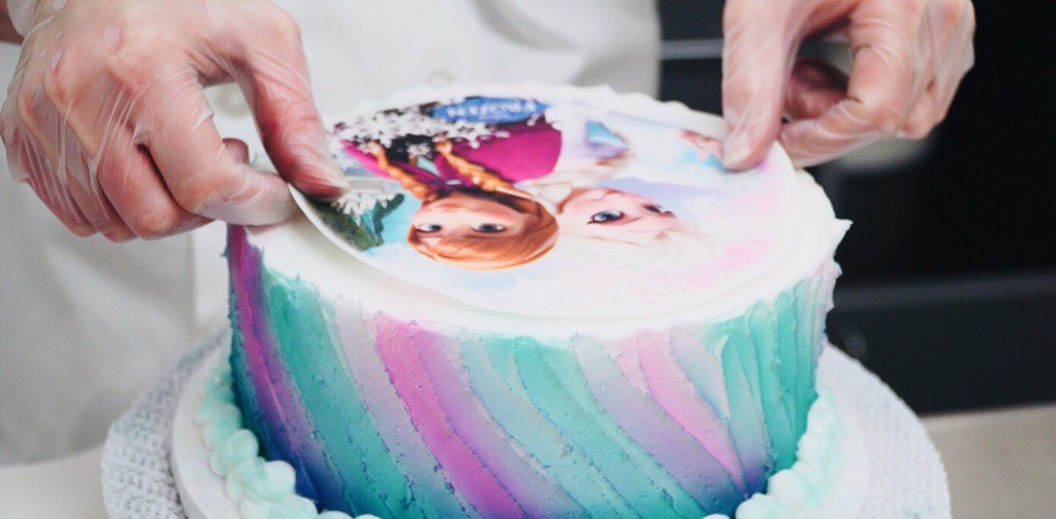 При декорировании картинками тортов с влажными кремами необходимо изолировать ее от влаги с помощью нейтрального холодного геля, шоколада или мастики.